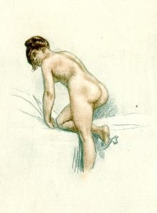 ROPS (Félicien). "Seule". Héliogravure en couleurs tirée sur Japon, montée sous cadre en bois. Dim. cadre : 32 x 26 cm ; support : 26 x 20 cm ; sujet : 17,5 x 15 cm (Exsteens, 632).