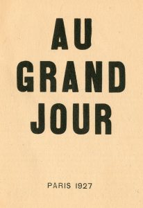 ARAGON.- Au grand jour. P., Editions surréalistes, 1927, plaquette in-12, br. Edit. orig. Pas de grand papier. Dans ce pamphlet, Aragon, Baron, Breton, Éluard, Péret et Unik justifient leur adhésion au parti communiste français.