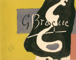BRAQUE (Georges). Carton d'invitation pour l'exposition "Braque graveur" chez Berggruen à Paris en novembre 1953. 1 f. plié de 10,5 x 13,5 cm, illustré d'une lithographie à pleine page (papier piqué)./ IDEM. Feuillet d'annonce pour le vernissage...