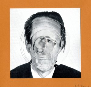 just. et signés au crayon par l'artiste. Choix de textes par A. Balthazar (96 poèmes et nombreux aphorismes écrits entre 1935 et 1965). Le mélangeur est constitué de douze portraits photographiques identiques superposés, dans lesquels des ouvertures circulaires concentriques de taille croissante sont ménagées ; les portraits ainsi découpés sont superposés et maintenus par un cadre en bois dans lequel ils sont libres de bouger, permettant de mélanger les différentes parties du visage. Bel exemplaire.