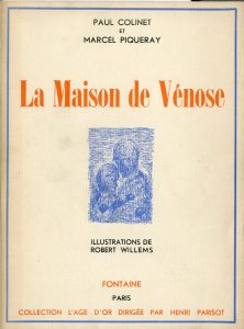COLINET (Paul) et PIQUERAY (Marcel). La Maison de Vénose. Illustrations de Robert Willems (front., vignette et compositions h. t. en noir). P., Fontaine, "L'Âge d'Or", 1947, in-12, br., couv. rempliée illustrée. Edit. orig. tirée à 975 ex....