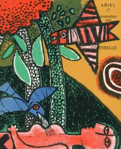 CORNEILLE (C. van Beverloo, dit). Ariel n° 17. A propos de l'exposition des peintures récentes de Corneille. P., Galerie Ariel, nov. 1970, 4°, ill., en ff., sous couv. en coul. Tiré à 750 ex. num. Contient 2 lithos originales en couleurs sur...