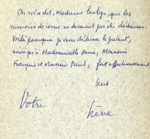d'Armand Simon. Justification manuscrite "65/100". Envois : "On m'a dit, Madame Evelyn, que les numéros de revue ne devaient pas être dédicacés. Voilà pourquoi je vous dédicace le présent, ainsi qu'à Mademoiselle Anne, Monsieur François et Monsieur Paul, fort affectueusement, Scut" et "Votre, Irène [Hamoir]".