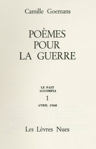 accompli" et portent à la fois leur propre numérotation et celle du "Fait accompli". Ex. num. d'un tirage compris entre 50 et 150 ex. num. sur vergé et sur papier couché pour les 12 numéros. Textes de Scutenaire, F. Dumont, Bourgoignie, Colinet, Goemans, Gutt, Lecomte, Mariën, Nougé, Souris... avec des illustrations de Gutt, Lecomte, Brenta, Colinet, Dohmen, Magritte, Mariën... 3 numéros sont dédicacés par Mariën à la famille Deknop.