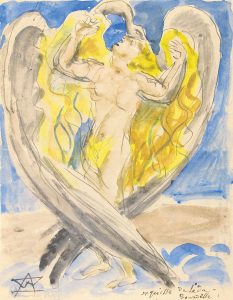 Lettre illustrée sur un projet de monument, au dos d’une aquarelle de la Léda. Belle aquarelle signée à gauche du monogramme, et légendée et signée à droite : « esquisse de Léda – Bourdelle » : Léda embrassée par le cygne. Au verso, lettre à un ami (ou fin de lettre numérotée « 3 ») ornée de trois dessins aquarellés. « Vos ennemis n’avaient pas songé à cela ! Pensez y ami. Sautez sur votre plus claire plume et criez bien cela. Mon Monument car j’ai donné plus qu’un Projet !! est prêt de toutes parts. Cette manœuvre tue les projets des concurrents. On l’ignore. Écrivez donc ce que seul j’ai fait sans plus que cela paraisse tout de suite et vous verrez. On reviendra à Delacroix qu’on a raté aussi. Dites aux deux concurrents d’enlever leurs niches. S’ils le peuvent dabs s’adosser à un autre vieux !!! Seul votre ami Bourdelle a créé son monument de toutes parts. Si cela tout cela vous le publiez vite ils sont foutus »... Au bas de la lettre, il a dessiné à la plume et aquarelle le monument sous trois angles différents, avec ces commentaires : « Profil gauche ardeurs de noblesse et d’élan à trois marches dessous »… ; « Profil de droite draperies comme des ailes » ; et « Dos méduse au bouclier et ses serpents actifs ».