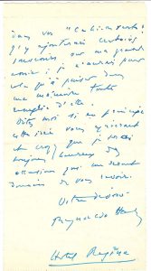 Intéressante lettre sur Sarah Bernhardt. Il a été pris toute la journée par ses répétitions à l’Opéra-Comique. « J’ai tenu pendant quelque temps un journal sur Sarah, assez intéressant, je crois, parce qu’il relate beaucoup de traits caractéristiques de sa personnalité intime et de son jeu. Mais je suis en pourparlers avec l’Amérique pour la publication de ces pages ». Si cette parution se fait, elle sera en anglais, et il se réserve le droit de le publier en français « et serais heureux que ce fût dans vos Cahiers verts. J’y ajouterais certains souvenirs sur ma grande amie ; je n’aurais pour cela qu’à puiser dans ma mémoire toute remplie d’elle »…