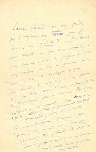 « Lucien chéri, ne me faites pas l’injure de penser que je crois à la Liberté !!– J’entends par liberté ce qui nous permet, à vous comme à moi, de fréquenter qui nous voulons, de lire ce que nous avons envie de lire, de manger ce qui nous tente, de dire ce qui nous passe par la tête, etc. [...] Les chiens-chiens occupent ici tout le temps qui n’est pas consacré au travail des gribouillis de notes ou aux soins ménagers. Il fait un temps exquis et je vois arriver avec chagrin le jour où il faudra faire les paquets. Je pense que Bailby a du se remuer énormément [...] pour mettre à l’abri, en cas de guerre, le sportif Scherer et autres athlètes élus »...