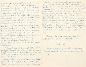 Belle correspondance à la grande pianiste, parmi laquelle de nombreuses pensées pour son regretté mari, Joseph de Marliave, tombé à la guerre dès 1914. Au fil de ses courriers, Roger-Ducasse évoque le conflit mondial, sa mauvaise santé, leurs projets musicaux respectifs, l’accueil de ses pièces en concert, et lui recommande quelques élèves pour son école de musique.... Nous ne pouvons en donner ici qu’un aperçu. En 1915, à propos de ses projets de révision d’œuvres de Schubert chez l’éditeur Durand. Mardi soir. « J’avais écrit à Jacques Durand, au sujet des mélodies de Schubert. Et voici qu’il me répond ce qu’il m’avait déjà répondu, à savoir que le public est habitué à la traduction de Schubert et de Schumann et qu’une nouvelle traduction ne se vendrait pas. J’ai eu beau lui dire qu’il s’agissait de mélodies jusqu’ici peu traduites : il répond que le volume édité chez lui est ce qu’il y a de mieux dans les mélodies de Schubert : là, il se trompe »... Il est également question dans plusieurs courriers d’un manuscrit musical – « un choral et variations en leçon de solfège », transformé plus tard en variations pour piano – qu’il tente de soumettre à Durand, lequel ne lui en propose pas assez. Son contrat ne l’engageant pas exclusivement, il tente, par l’intermédiaire de sa correspondante, de le soumettre à Sénart, qui lui avait déjà fait de « fortes avances »... Vendredi soir. « J’envoie au diable l’édition de Schubert qui me rase et pour laquelle il m’a offert 200 frs !...Voilà où en sont mes affaires : cela m’a étonné de sa part, même avec les pertes que la guerre peut lui apporter »... [15 mai 1915], remerciant pour la peine « que vous avez prise à mettre sur doigts mon Étude. Je reçois à l’instant un mot de J.D. me disant que vous avez supérieurement joué [...] et qu’il accepte mes conditions »... – Représentation de La Salamandre : « Triomphe ! On m’a poussé sur la scène et j’ai dû saluer et sourire ! C’est pourri ! Enfin ! Lambinet jubilait et cela m’a consolé de ce succès criant »... Il tente, par de nombreuses lettres, de réconforter son amie, après la mort de son mari : « Il m’ennuie, cependant, de penser que vous n’allez pas et que rien ne peut vous aider à reprendre votre vie. Je ne compte plus maintenant que sur le temps et j’ai honte de le dire, car il devrait y avoir des peines éternelles ! [...] Il faut vivre et je le répète, la vie, inflexible, continue »... Dès qu’il sera achevé il lui enverra son Nocturne de Printemps qui sera « beaucoup plus dans votre genre »... Mercredi. Durand lui a appris qu’elle avait accepté de jouer chez lui le Tombeau, en même temps que son Quatuor [Tombeau de Couperin de Ravel]... Il se remémore l’audition de ce morceau avec Joseph, « son émotion à l’adagio, et cet adagio m’est cher puisqu’il avait trouvé le chemin de son cœur – il y a ainsi quelques œuvres qui nous font souvenir de ceux qui les ont aimées, et n’est-ce pas là la raison qui leur donne à nos yeux quelque prix »... Dimanche soir. Félicitations pour la décoration posthume de Joseph : « J’y vois aussi pour vous un encouragement et une possibilité de travail : sa gloire appelle et commande la vôtre, car sommes-nous assurés que les morts n’agissent pas sur les vivants ? »... Paris 22 août. « Longtemps, très longtemps, mon cœur s’est refusé à admettre la disparition de ce cher Jo, qu’on ne pouvait pas ne pas aimer... chaque fois que j’achève une œuvre quelconque, je me pose aussitôt la question : eût-il aimé ça ? Et je regrette de ne plus lire dans ses yeux, car ce sentiments étaient silencieux, cette émotion si précieuse pour moi, et que je lui avais vue à mes deux quatuors »... Samedi soir. Abruti de travail, il orchestre et transcrit une Fantaisie qu’il souhaiterait lui faire jouer... Il a reçu des nouvelles de Fauré « qui, (dit-il) se réjouit d’être enfin libéré de la servitude du Conservateur »... Etc. On joint une L.A.S. à un Docteur (1953), une carte de visite a.s. (et une de sa femme Marguerite).