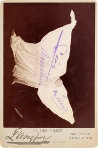 Bel ensemble de portraits d’actrices, chanteuses et danseuses, la plupart en costumes de scène, avec dédicaces autographes signées, parmi lesquelles : Mary Auber, Lise Berty, Rosa Bruck, Emma Calvé (2), Marcelle Dartoy, Suzanne Desprès, Amélie Diéterle (2), Eleonora Duse, Mlle Emelen, Loïe Fuller, Germaine Gallois, Julia Guiraudon, Jane Hading (2), Meyrianne Héglon, Ève Lavallière (2), Georgette Leblanc, Felia Litvinne, Catherine Mastro, Juliette Méaly, Andrée Mégard, Cléo de Mérode, Eugénie Nau, Juliette Simon-Girard (2), Louise Théo (2), Charlotte Wyns, etc. Plus 3 photographies non dédicacées.