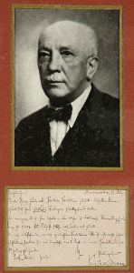 * Richard STRAUSS (1864-1949). L.A.S., Marquartstein 12 août [1901], à Robert Lienau au magasin de musique Schlesinger, à Berlin ; 1 page obl. in-12 (carte postale), adresse au verso ; en allemand (encadrée avec une photographie).