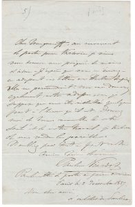 « Cher Tourgueneff, au moment de partir pour Varsovie, je viens vous donner une poignée de main d’adieu. J’espère que vous m’écrirez en adressant vos lettres au Théâtre Impérial. […] Donnez-moi de bonnes nouvelles de votre santé et de votre travail. Je tâcherai de vous rendre la pareille. N’oubliez pas tout à fait votre amie bien dévouée »…. Louis Viardot prend la plume pour renseigner son ami sur la publication dans les revues françaises de plusieurs de ses œuvres (la plupart traduites par lui et Tourgueniev) : L’Auberge de grand chemin dans L’Illustration, Le Partage dans la Revue de Paris, Le Birouk traduit par H. Delaveau dans Le Courrier de Paris, et Une correspondance dans le Journal pour tous illustrée par Bertall : « Vous voyez que votre nom, suivant le mot de Cervantès, vole sur toutes les ailes de la Renommée. Je crois que c’est une très bonne manière de préparer le succès du livre [Scènes de la vie russe] », dont il reverra soigneusement les épreuves… Ivan Tourgueniev, Nouvelle correspondance inédite (1971), t. I, n° 165.
