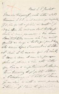 Pauline VIARDOT. L.A., Bade 8 juillet [1865], à Ivan Tourgueniev ; 6 pages in-8 à son chiffre.
