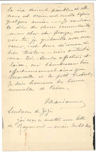 Marianne VIARDOT (1856-1919) troisième fille des Viardot, musicienne et peintre, fiancée à Gabriel Fauré, elle épousa le pianiste Alphonse Duvernoy. 3 L.A.S. « Marianne », novembre-décembre [1914], à son beau-frère Georges Chamerot...