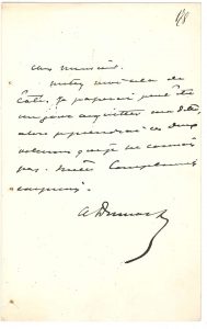 Marthe Bibesco (à Simone de Caillavet), Marcel Boulenger, Ferdinand Brunetière (2), Alfred Capus (photo dédic. à Jules Huret), Elme Caro (3), Fernand Divoire, Alexandre Dumas fils, Marthe de Fels (à Simone Maurois), Robert de Flers (à Mme André Maurois, pour la réception de Valéry à l’Académie française), Henry d’Ideville, Georges Imann (2 poèmes), Fernand Kolney (à Rachilde), Eugène Mouton (à l’éditeur Ollendorff, avec anecdote amusante sur l’égypotologue Maspéro), Georges Ohnet, Paul Ollendorff (procès de Camille Lemonnier), Claude Seignolle (à Marcel Schneider), Jacques Suffel (2 à Mme Maurois), Laurent Tailhade (à P. Redonnel), Charles Vildrac (à G. Gayon). On joint un carton de Mme Aurel, un prospectus pour une conférence de Verhaeren à Saint-Pétersbourg, et le tapuscrit annoté d’une pièce de Charles van Lerberghe.