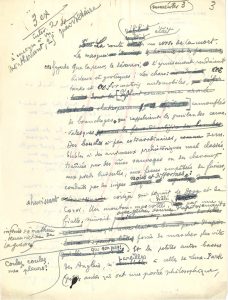 Henry de MONTHERLANT. Dossier de manuscrits autographes et tapuscrits corrigés, Brouillons des “Textes” sous occupation, [1940-1944] ; environ 55 pages la plupart in-4, avec titre autographe.