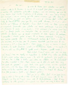 Correspondance amicale et codée, se rapportant principalement à leurs « chasses » et à leurs aventures pédophiles, en cette période trouble, et évoquant les deux jeunes frères N., Doudou (Edmond) et Roro (Roland) avec lesquels les deux écrivains entretenaient une liaison. Mme N., la mère des deux garçons, avait suivi Montherlant à Nice, où, en servant ses intérêts, il veillait sur la petite famille. Il a donné à Peyrefitte des nouvelles de leurs protégés, qu’il a inscrits au lycée de Nice, et lui a raconté ses nouvelles « conquêtes »... [Correspondance, lxix et lxxi.] 24.XI.40. « Je viens de tresser pour Doudou une petite couronne, celle-là de lauriers. Le travail de ces enfants fait plaisir, vraiment, et je partage votre satisfaction paternelle »... La scolarité de son protégé Beaum. n’est pas si prometteuse... Il a écrit aussi à Doudou pour tenter de dissuader la famille N. de rentrer à Paris... « Nous avons connu, “au hasard des chemins”, de ces folles jeunesses en fuite, qui faisaient pitié. Tant pis si ma statue fond à vos yeux comme neige au soleil ! C’est qu’elle n’était ni de sel compact, comme celle de la Sodomite, ni d’or et d’argile comme celle de Nabuchodonosor »… Suit une longue discussion sur la version latine, où Peyrefitte vante les mérites de la culture classique, et se remémore la j oie qu’il a toujours éprouvée à traduire du grec et du latin : « c’était celle d’aller à la recherche d’une pensée consignée dans ces mots depuis des dizaines de siècles, celle de faire jaillir une vive lumière d’expressions pétrifiées, celle de découvrir un trésor caché, un monde disparu »... Puis Peyrefitte évoque, avec des allusions à double sens, leurs amitiés communes et les « membres de l’O. » (l’Ordre pédérastique), et rassure Montherlant sur la discrétion de Jean Vigneau et du Chevalier [Henry Houssaye] qui dit l’avoir rencontré avec une fille ravissante, et savoir qu’il a une maîtresse à Nice. Compte tenu de leurs expériences à tous deux, il a mis en garde le Chevalier sur les dangers de Marseille… Il remercie Montherlant de sa recommandation auprès de Jean Vigneau (« bien dire que j’ai tout sacrifié à la Carrière, mon père ayant vendu la plus grande partie des biens que j’aurais pu administrer »…), et au journal Marianne : « Je ne me trouve guère encore en veine de copie. Mon esprit se tend sur mon manuscrit [Les Amitiés particulières], et j’aurais peine à l’intéresser à autre chose. Surtout, en ce moment, écrire sur quoi ? Il n’y a que vous qui ayez le privilège d’écrire pour vous f… du tiers et du quart »... 14.XII.40. Il lui annonce sa prochaine arrivée à Nice pour le 20 décembre, voyage qui le réjouit mais qui vient malheureusement « interrompre “quelque chose qui commençait” [...] Une longue suite d’efforts, enfin couronnés de succès, en date d’hier [...] Quelque chose vraiment d’exquis »... Il est touché des compliments du « connétable » [Jean Vigneau]... Il évoque ses soirées « limouxines », car Gaby Morlay et Mistinguett sont venues à Limoux : « Ma passion pour Mistinguett n’a d’égale [...] que celle que vous inspirait la dernière déclaration sur la récitation obligatoire – et non laïque – par tous les Pingouins du “Pater Noster” »... Il s’amuse enfin d’avoir découvert sur la carte, à côté de Peira-Cava (où a vécu Montherlant), « une localité fort latine, nommée Duranus »...