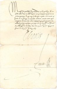 29 avril. Il est d’accord avec tout ce que Sarlabos lui écrit, et regrette de ne pouvoir lui faire aussi bon traitement que ses services le méritent : « Mais ayant tant de grandes despences a supporter pour mettre hors les estrangers de mon Royaume il est necessaire que mes bons et loyaulx serviteurs supportent en leur particullier l’incommodicté du temps et des grandes affaires de mon Royaume »... 8 mai. « Jay commandé au Cappne Lisle de saller mettre dans ma ville du Havre avec sa compaignie pour y demeurer et tenir garnison. A ceste cause je vous prie ne faillir de le recevoir en icelle et le fere loger et accommoder de vivres et toutes autres choses necessaires »...