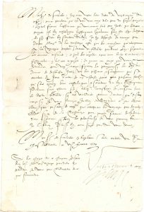 Chastellerault 7 février 1570. Il envoie vers M. de La Mailleraye M. Pavyot, bon catholique, « affin que les marchans qui entreprennent fere les voyaiges prestent serment de fidélité pardevant luy »... Cahors 11 mai 1573, recommandant le S. Villandin, qu’il envoie par-delà pour les affaires de l’amirauté... Saint-Germain 17 février 1574. Il a reçu sa lettre relative à celle de l’ambassadeur du Roi en Angleterre, « touchant le faict du navire du capitaine Minville »... Turny 8 mai 1575, accusant réception du « rolle de ceulx que vous desirez estre employés en lestat de la marine »...