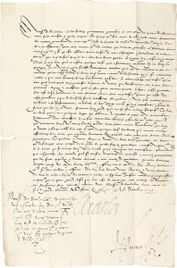 CHARLES IX. L.S., Soissons 17 décembre 1573, à Corberan de Cardillac, sieur de Sarlabos, capitaine et gouverneur de la ville française de Grâce [Havre de Grâce] ; contresignée par le secrétaire d’État Claude Pinart ; 1 page grand in-fol.,...