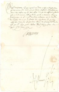 10 janvier. Elle ne peut lui donner d’autre assurance de l’intention du Roi, « monseigneur et frere » [sic], pour le paiement des soldats, que celles que lui-même écrit présentement. « Je vous assureray seulement de tenir la main que vous soyez satisfaict suivant ce que mond. frere l’entend, qui est au demourant apres a faire ung retranchement de ses garnisons pour avoir plus de moiens de fere doresnavant bien paier celles qui demoureront »... 20 février. Le porteur a rendu compte des mesures prises par Sarlabos pour la sécurité de sa place : « le Roy monsieur mon filz vous escript qu’il a telle asseurance en vous quil ne crainct aucunement quil en advienne faulte ni inconvenien »...