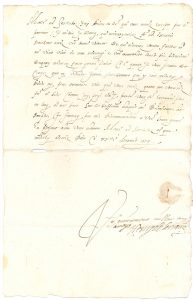 26 août 1579. Des excuses étaient inutiles, « scaichant assez vostre bonne volonte. Et que n’eussiez voullu faillir à me venir veoir en mon mesnaige si vostre commodité leust peu permectre en quoy m’eussiez faict grand plaisir [...] et croyez que ny viendra jamais gentilhomme qui y soit mieulx receu ny plus volontiers veu que vous serez quant me voudrez fere ce bien »... 9 mars 1580. « Desirant fere icy louverture d’un havre, comme jen ay la permission du roy, et de recouvrer pource fere quelzques gens expers qui men peussent donner quelque bon conseil et advis, cest la cause que jenvoye expres par devers vous pour vous prier que sil sen peult trouver ou vous estes et la allentour les me voulloir escripre »...