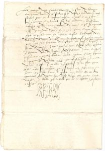 Mémoire et comptes approuvés par Sarlabos (1567, fente)... Lettres diverses, instructions, remerciements, recommandations, copies certifiées : D. d’Antin, Du Chastellier, Anne de Joyeuse, Lanssac, Charles de Lorraine, maréchal de Retz, Jacomo Spinola...