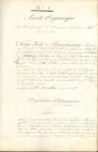 Vingt arrêtés de Jules Rolland de Chambaudouin ou Charles de Montigny, intendants, respectivement, des cercles formant la Courlande supérieure et la Courlande inférieure, ou du maréchal Macdonald, duc de Tarente, commandant en chef du 10e Corps de la Grande Armée. La plupart des arrêtés y figurent intégralement, quelques-uns en résumé. Parmi ceux donnés intégralement sont l’arrêté organique fixant que le pays sera régi et administré au nom de Napoléon (Mittau 1er août 1812), et ceux relatifs à la perception, à la vente du sel, à une contribution de 2 millions de roubles en papier, au cours des monnaies, au port d’armes et à l’espionnage, aux denrées coloniales, à la nomination du général Campredon aux fonctions provisoires de gouverneur général militaire et civil... Le registre fut employé à nouveau à la fin du siècle pour noter une « Instruction des moutons », la coupe de bois, des achats et vente de bêtes…