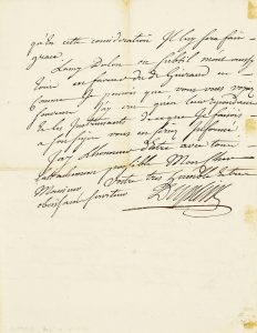 Belle et rare lettre concernant la Compagnie des Indes. Il a écrit en faveur de son protégé à M. de Pressigny, qui a répondu ne rien pouvoir prendre sur lui, vu les faits dont Guiraud se trouve chargé par une procédure. « J’en ay conferé icy avec la Compagnie qui est si outrée des friponneries dont led. Guiraud Guichard et leurs complices sont accusés que ma sollicitation a été assez mal receüe. Cependant j’ay entrevu par les discours de M. Hocquart chargé de la correspondance que la compagnie se determineroit a faire grace audit Giraud sil la meritoit en faisant une confession generalle et bien sincere de toutes les manœuvres auxquelles il peut avoir eu part directement ou indirectement et de tout ce qui peut en estre venu a sa connoissance. A sa place j’accepterois la voye qui m’est offerte parce que pour percer la verité on l’offrira à quelques autres de ses complices qui pour se soustraire aux poursuittes qu’ils ont à craindre ne manqueront pas de l’accepter et de charger Guiraud luy meme qui alors trouvera tout chemin clos pour obtenir grace »… Dupleix avoue ne pas aimer se mêler d’affaires de cette espèce ; seule une recommandation comme celle de son ami pouvait l’y déterminer. « Si donc Guiraud veut tirer son épingle du jeu qu’il se deboutonne et avoue tout sans deguisement soit juridiquement devant l’intendant qui a un arrest d’attribution soit par une declaration signée de luy qu’il poura adresser a Mr Hocquard ou meme a moy, parce que je n’en ferois usage qu’apres m’estre assuré qu’en cette consideration il luy sera fait grace »…