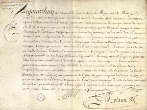 LOUIS XIV (1638-1715) Roi de France. P.S. (secrétaire), contresignée par Phélypeaux, Marly 13 juillet 1693 ; vélin oblong in-fol. (cachet de l’Académie de Mâcon).