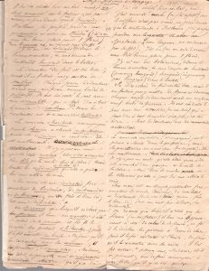 Intéressante réunion de manuscrits et brouillons, probablement destinés à une « Chronique de familles. Souvenirs de trente ans », comme l’indique une note sur un cahier (plusieurs portent le cachet encre Manuscrit du Vte de Vaublanc). – Le Bal « tiré des souvenirs de Mr S. », Paris 6 février 1828, récit tiré des mémoires de M. de Salers (40 p., nombreuses ratures et corrections). – Plan de L’Indispensable ou Manuel de Bureau, « Plan primitif communiqué au libraire Hachette avant de venir en Bavière en 1836. Il en a adopté le titre et l’idée un “L’Indispensable” a été composé et publié chez lui depuis », 1832-1835, plan d’un livre destiné à donner les connaissances indispensables dans tous les domaines (cahier de 14 pages), avec un petit carnet de notes : Plan d’une bibliothèque universelle (16 p.). – Cacologies munichoises, Munich 1837, au sujet des « Imperfections de langage », avec des anecdotes (cahier de 5 p., ratures et corrections). – Petit Voyage à l’Exposition Universelle de 1867 – causeries d’un Français d’Outre-Rhin, ensemble de 3 cahiers (76 p., avec additions et corrections). – Notice sur Maximilien II, Roi de Bavière, « copie terminée le 10 mars 1867, 3 ans après la mort du Roi » (cahier de 27 p.). – Précis de la littérature française, « Brouillon. Il y a une copie nette à faire relier » (cahier de 40 p.). Suivent 4 petits textes : Discours de Clotilde à Clovis qu’elle exhorte à embrasser la foi chrétienne ; Vie de Grégoire de Tours ; Tous les êtres louent le Seigneur, prière d’action de grâces « à Coubert » ; Du Crédit public, extrait du Journal du Nord des 4 et 5 avril 1829. Plus un petit carnet : Travaux, notes, notes sur ses écrits et lectures. On joint 2 manuscrits d’un Projet rendant à éteindre la mendicité… par Pierre-Alexandre Leroux (12 et 14 p. in-fol.) ; et un dossier de plus de 40 lettres ou pièces concernant la Société des Factoreries de Ndjolé au Congo (siège social au Havre), 1890-1900.