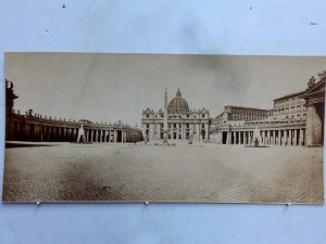 Italie - ANONYME. St Pierre de Rome – Vue panoramique de la place. Circa 1860. Tirage sur papier albuminé, format de l'image : 430 X 200 mm.