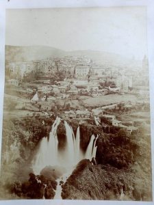 Italie - ANONYME. Tivoli. Circa 1860. Tirage sur papier salé, format de l'image : 400 X 350 mm. Légèrement jaunie, belle et spectaculaire épreuve.