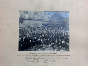 SS. PAPE PIE X. Signature et dédicace. Photo de groupe légendée « Humblement prosternés aux pieds de votre sainteté les membres de la Fraternité de Notre Dame de l’Assomption sollicitent la grâce de la Bénédiction Apostolique ». ...
