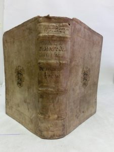 grandz sieges de Rhodes ; le merueilleux siege de Malte... Lyon : Chez les Heritiers Guillaume Rouille, 1612. 1 vol. in-4, plein vélin doré du temps, dos à nerfs, titre à l'encre, plats en encadrés d'un jeu de filets dorés, écoinçons d'angles; armes (rapportées), d'or à trois léopards en pal, poussées à froid au centre des plats et peintes en noir et or. 4 ff. dont le titre-frontispice, portant le portrait du dédicataire de l'ouvrage Alof de Vignancourt, dans un décor architectural accompagné de vignettes historiées, 1037 pp., 54 PP. Tout petit trou sans gravité à la page de titre, 5 premiers feuillets un peu effrangés.