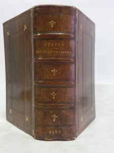 GUAZZO, Stefano. Civile Conversation du Seigneur Estienne Guazzo Gentilhomme Monferradois, divisée en quatre livres. Au premier sont contenus en général tous les fruicts... Lyon, Benoist Rigaud, 1592. 1 vol. fort in-12, plein maroquin havane...