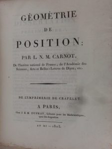 [Sciences] CARNOT, Lazare. Géométrie de position. Paris, J.B.M. Duprat, an XI – 1803.. E.O. 1 vol. in-4, demi-chagrin vert, dos à nerfs, titre et filets et roulettes dorés ; reliure de la fin du 19ème. [4]-XXXVIII-[2]-489 pp., 15 planches...