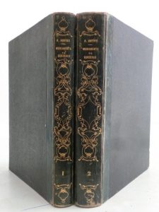 Bordeaux] BORDES, Auguste. Histoire des monuments anciens et modernes de la ville de Bordeaux. P., Bordes & Bordeaux, l'auteur, 1845, 2 volumes in-4, demi-veau glacé du temps, dos lisse à décor doré de rocaille, titre doré; dos frottés. texte...