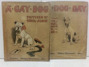 ALDIN, Cecil. A dog day – A gay dog L., Heinemann, 1902 et 1905 2 albums in-4, couverture imprimée de l'éditeur. Couvertures défraîchies et quelques défauts.