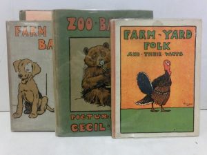 ALDIN, Cecil. ANIMAUX : Le livre de la basse cour – Chez Messieurs les toutous - Coin-coin – Joyeux amis – Black et ses amis - Mouflu – Farm Babies- Zoo Babies – Farm yard folk Stokes ; Frowde, 1910-12-13 P., Hachette, 1925-30 9 albums...