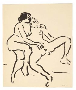 Albert Marquet (1875-1947) Scène saphique Encre sur papier. Signée des initiales en bas à droite. Provenance : collection privée. H_24,5 cm L_21 cm