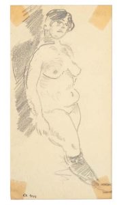 Albert Marquet (1875-1947) Nu de profil Encre sur papier. Signée des initiales en bas vers le centre. Provenance : collection privée. H_13,5 cm L_7,5 cm
