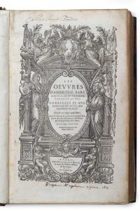 Pare (Ambroise). Les Œuvres corrigees et augmentees par luy-mesme, peu auparavant son decés. Divisees en vingt-neuf livres. Avec les figures & portraicts, tant de l’anatomie que des instruments de chirurgie, & de plusieurs monstres. Sixiesme edition