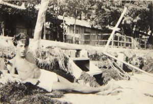 Cocteau allongé sur la plage. (Marny, Jean Cocteau archéologue de sa nuit, pp. 51-53.)