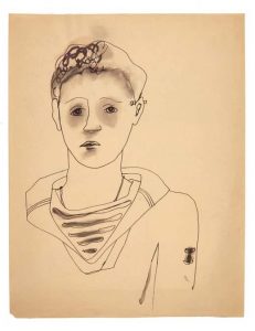 Cocteau (Jean). Portrait d’un jeune marin. Sans lieu ni date. Dessin original à la plume, au lavis et à l’encre noire (27 x 21 cm). Beau portrait d’un marin, à l’encre et au lavis.