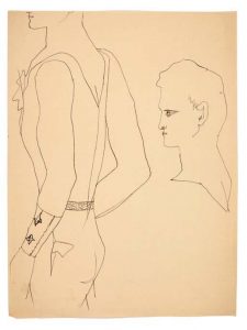 Cocteau (Jean). Dessin original. Sans lieu ni date. Dessin original, plume et encre noire (26,8 x 20,6 cm). Beau dessin original figurant un portrait et un buste de profil.