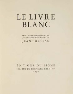 Cocteau (Jean). Le Livre blanc. Précédé d’un frontispice et accompagné de 17 dessins de Jean Cocteau. Paris, éditions du Silence, 1930. In-4, broché, couverture rempliée, chemise, étui de l’éditeur. Première édition illustrée : elle est