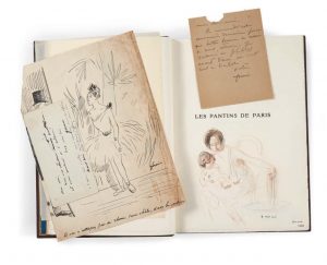 édition. Un des 200 exemplaires numérotés sur papier vélin d’Arches, seul grand papier après 50 exemplaires sur Japon. Exemplaire enrichi, sur le faux titre, d’un beau dessin aquarellé original par Jean Louis Forain. Il porte un envoi autographe signé de l’illustrateur : Amon ami, Forain 1928. Il offre également :