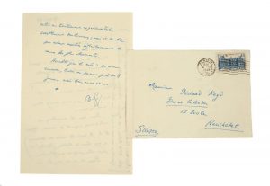 Gide (André). Lettre à Richard Heyd. Sans lieu [Paris], 16 mars 1948. Lettre autographe signée A.G., 1 page ½ in-8, enveloppe conservée. Intéressante lettre d’André Gide adressée à son éditeur Richard Heyd de la maison Ides et Calendes à