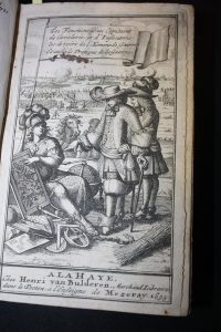 Homme de Guerre. Tome quatrième : Pratiques et maximes de guerre. La Haye, Henry Van Bulderen, 1693 ; reliés en un fort volume in-12, veau marbré ; [12] y compris le frontispice par A.D. Winter, 104pp. ; 160pp. 9 planches dépliantes ; 140pp. ; 138pp., [1]f. de table et 6 pl. dépl., la dernière déchirée. Ouvrage rare complet.