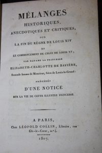 Elisabeth-Charlotte de Bavière : Mélanges historiques. Paris, Léopold Collin, 1807 ; in-8 ; plein veau havane.